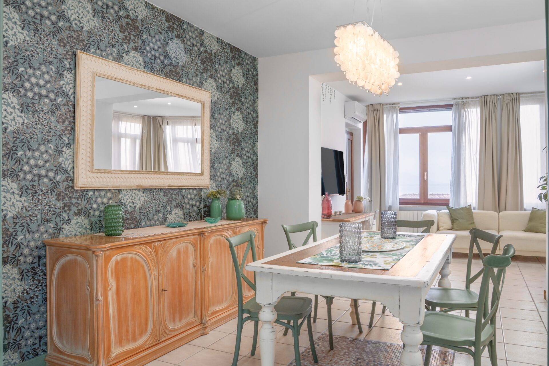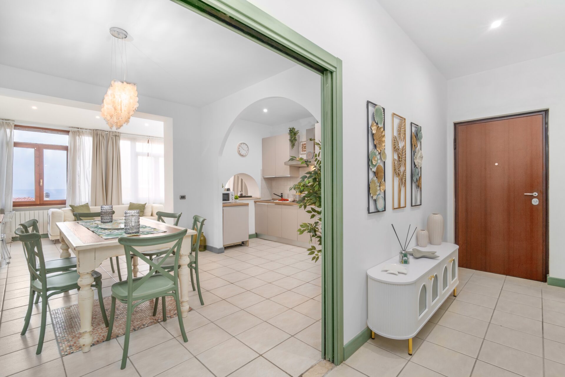 Appartamento con giardino, vista mare. 3 camere e posto auto privato