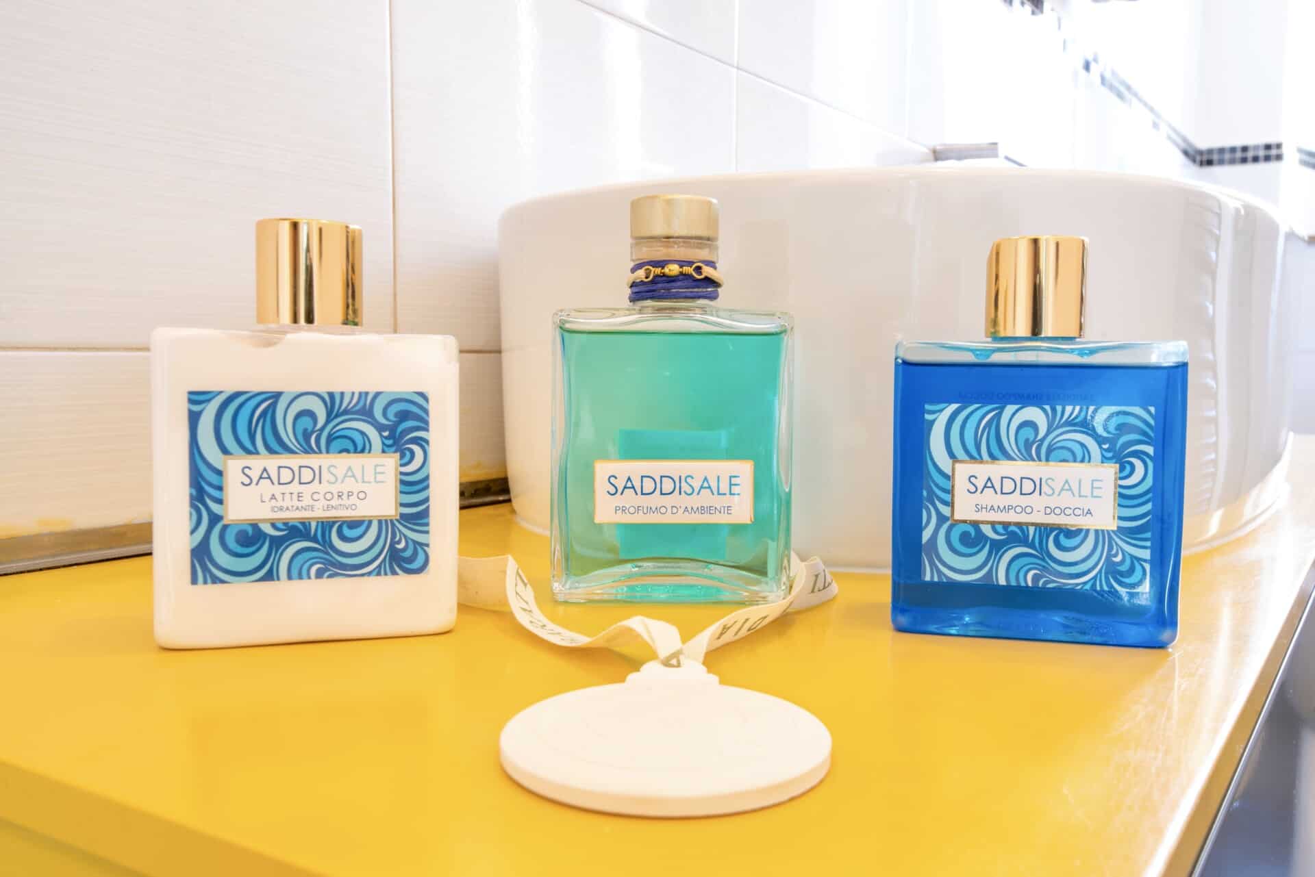 divano angolare in pelle chiara, perfetto per rilassarsi dopo una giornata di scoperte. Il bagno,