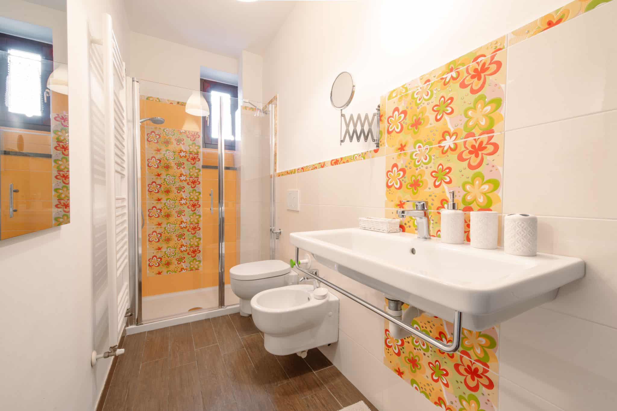 Il bagno moderno, con una generosa doccia, è elegante e pratico. L’appartamento è dotato di
